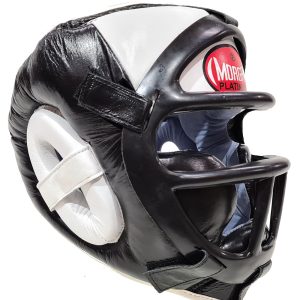 MORGAN LEATHER HEAD GUARD WITH ABX PLASTIC REMOVABLE GRILL[Small Black/White]