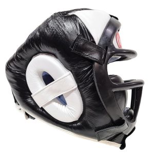 MORGAN LEATHER HEAD GUARD WITH ABX PLASTIC REMOVABLE GRILL[Large Black/White]