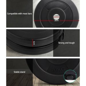 Strong and sturdy, these 10kg Barbell Weight Plates will allow you strengthen and tone your muscles at home with ease. The 2 x 10kg weight plates are made from cast cement and covered with robust, floor-friendly rubber, so you can work out without damaging your floors or disrupting neighbours. With weight plates, you can easily add or remove weight to match your desired intensity level, allowing you to continuously challenge yourself and make progress. Their versatility allows for a variety of workout options, making them suitable for beginners and advanced lifters alike.