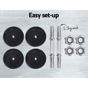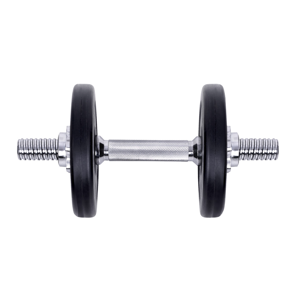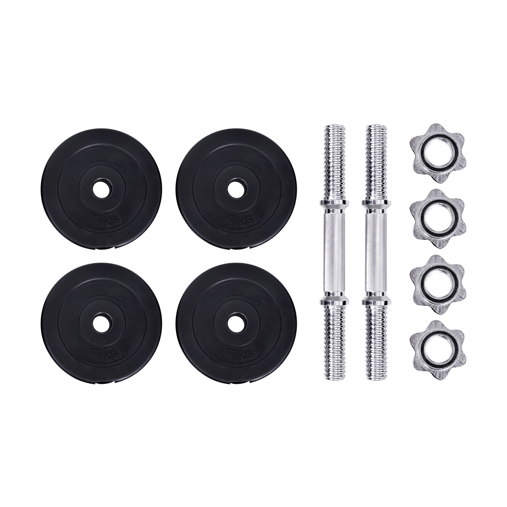 Time to get tough. If you are looking to boost those triceps, biceps and shoulders, our 15kg Dumbbell Set is the perfect deal for you. Whatever your game is, our dumbbell set lets you strengthen and tone those muscles your way. This commercial-grade set features a high-quality bar with non-slip handle that offers optimal gripping surface. Each weight plate weighs 2.5kg and is made of cast cement coated with smooth plastic, reducing clanging sounds and making them more floor-friendly. You can adjust the weight of the dumbbell by removing the weight plate and only using the dumbbell bar (weighing 2.5kg each) or adding more compatible weight plates. The high-quality star-shaped nuts ensure the weight plates stay securely in place for safe workouts. Best of all, the dumbbell comes in a set of two (two 7.5kg dumbbells for 15kg total) so that you can exercise both arms at the same time.