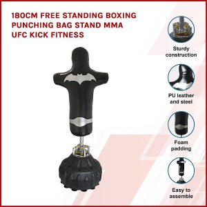 Whether for self-defence, physical fitness, or competition, this 180cm free standing punching bag and stand by Randy & Travis Machinery is an essential part of your training routine. Designed to provide a realistic scenario, it stands 180 centimetres tall, about the same size as an average male opponent. Whether your thing is UFC, kickboxing, MMA, standard boxing, fitness training, or other martial arts, this set is the perfect addition to your equipment.