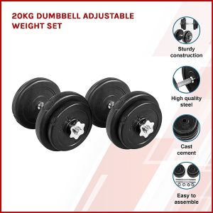 This 20kg Adjustable Dumbbell Set from Randy & Travis Machinery is perfect for lighter lifters. Easy to store, this set has graduated weight plates to accommodate you all the way from beginning lifter to achieving your ultimate fitness goal.