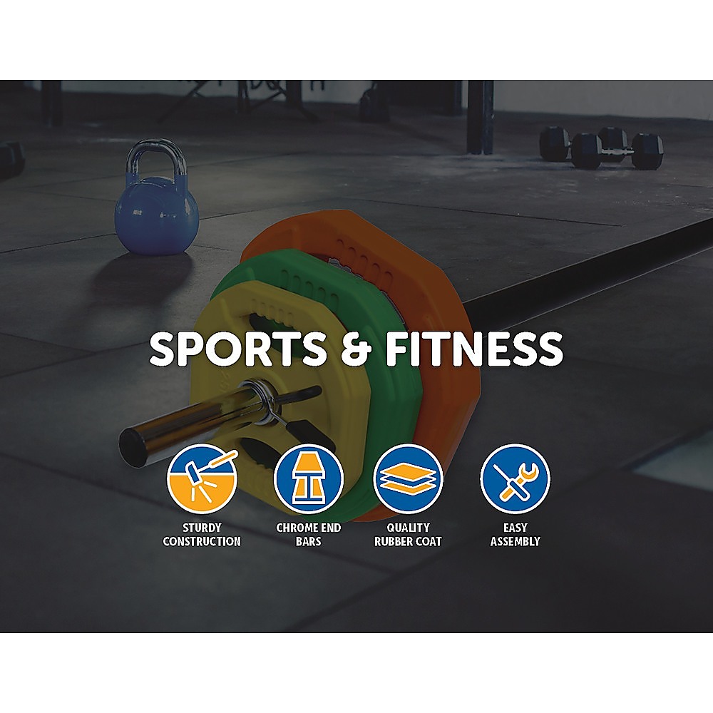 - 2 x 5kg coloured rubber standard plates