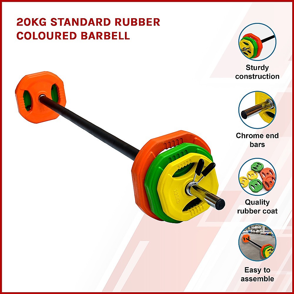 20kg Standard Rubber Coloured Barbell