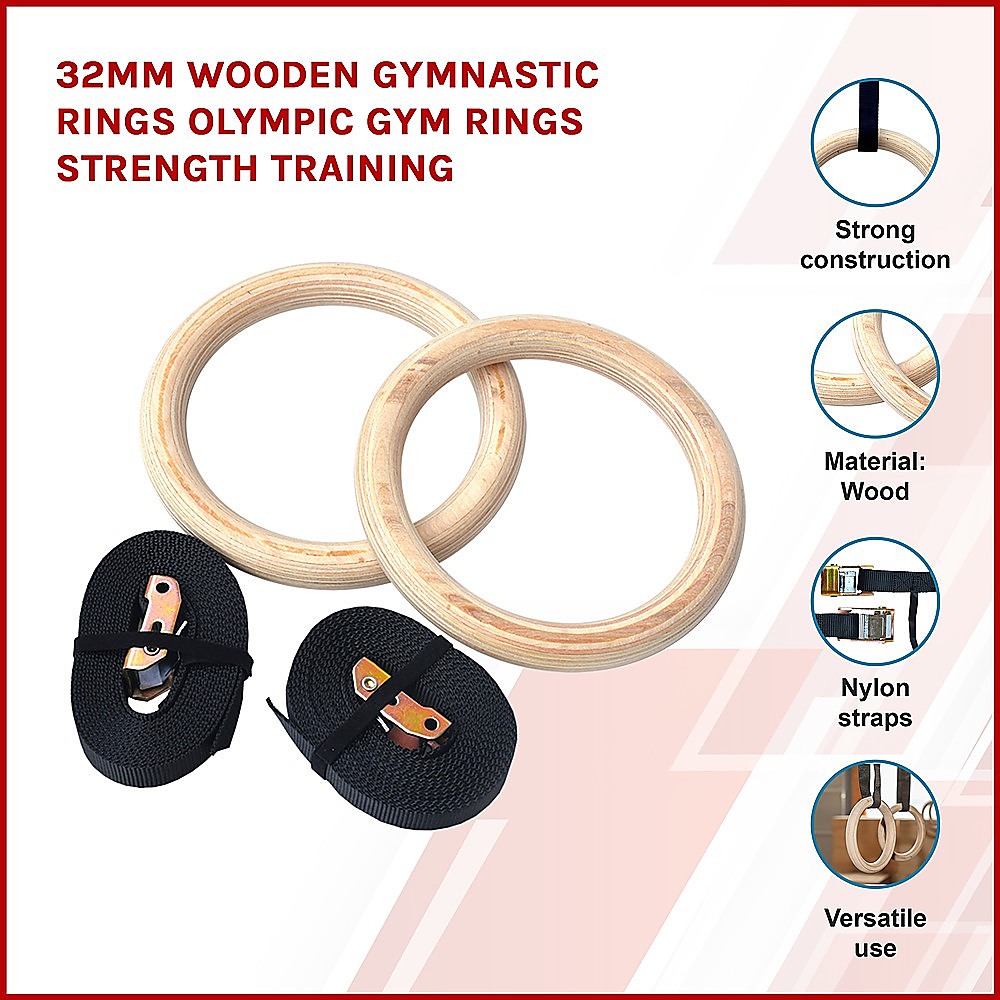 Train for your own pleasure or aim high in competition with these 32-millimetre wooden Olympic gymnastic rings from Randy & Travis Machinery. Other athletes may find rings perfect for cross training on strength and balance, while physical therapists often use them for patients who need to stabilise their core. The rings come with heavy-duty nylon straps for support.