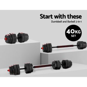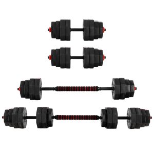 This 40kg 2in1 Dumbbell Barbell Set is the ideal piece of fitness equipment if you are looking to boost those triceps, biceps and shoulders. Whatever your fitness goals are, our dumbbell set lets you strengthen and tone those muscles. The innovative design allows for two combinations of modes as barbell and dumbbell, to suit your workout requirements. The 16 plastic-coated iron weight plates allow you to adjust the weights that you want. You can easily add or reduce the weight plates and rotate the weight plates holder to lock into the dumbbell handles. The non-slip handle offers optimal gripping surface and the safety lock feature ensures the weight plates stay securely in place for safe workouts. Plus, with a foam-wrapped barbell bar, it brings more comfort to your workout.