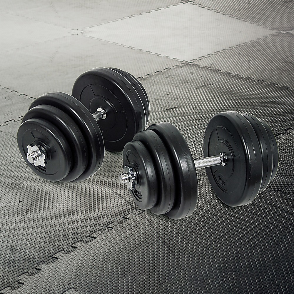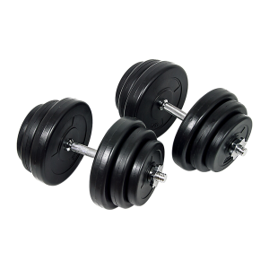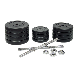 The set comes with twelve plastic-coated cement plates in small increments, so you can increase your load gradually as you build your strength. Star-shaped nuts made from high-quality steel keep the weights in place for easy lifting.