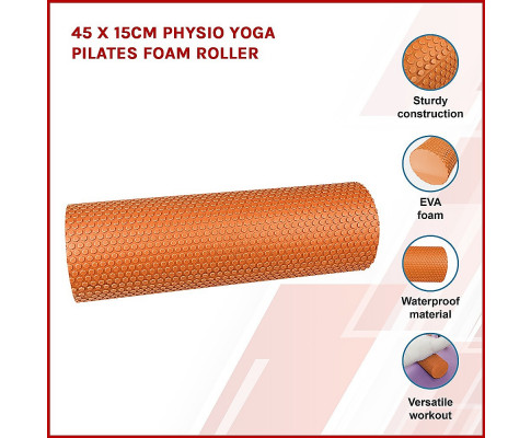 This EVA foam massage roller comes in orange and its 45 x 15cm compact size will allow you to use it at home or take it to the workout. Not only will this attractive fitness enhancer help you tone and strengthen, it will serve as your very own personal masseuse. This foam massage roller is ideal for yoga and Pilates classes, fitness routines and even for rehabilitation and physiotherapy.