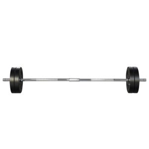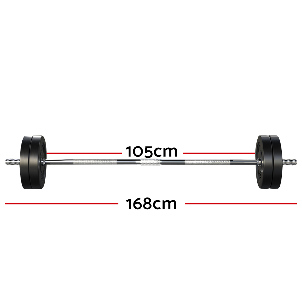This 48kg barbell weight set is 168cm. These 5kg weight plates are filled with sand and covered with robust, floor-friendly rubber to minimise noise and floor damage. Easily add and remove plates to ensure an appropriate workout for your specific muscles. Plus, the included solid chrome plated steel Barbell Bar, holds up to 150kg and is compatible with most standard 31mm – 35mm hole weight plates, so you can work at any weight.