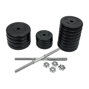 The set comes with twelve plastic-coated cement plates in small increments, so you can increase your load gradually as you build your strength. Star-shaped nuts made from high-quality steel keep the weights in place for easy lifting.