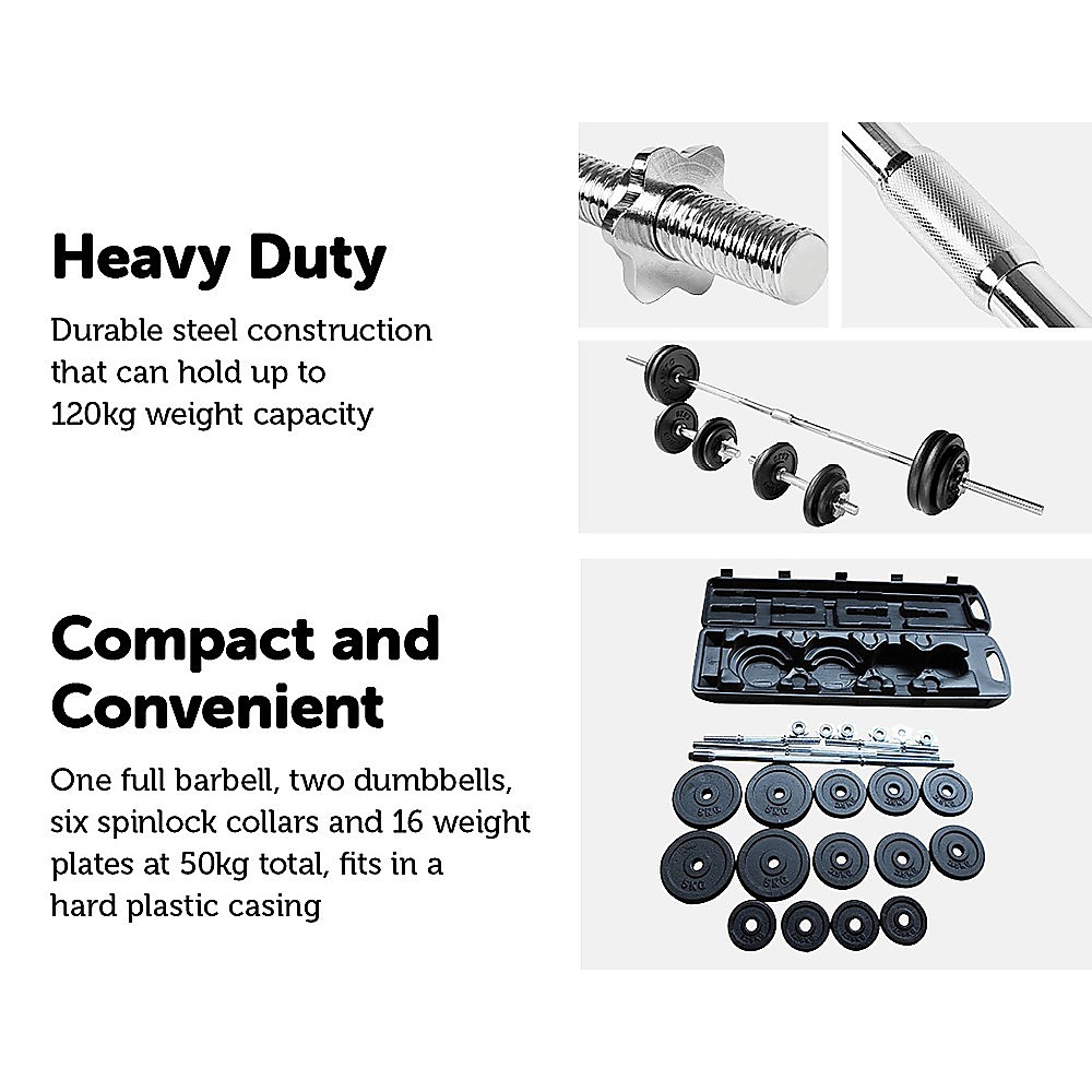 Maximise your workout routine the smart way with the 50kg barbell set with carry case.