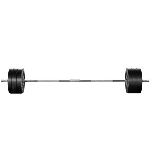 The 68kg barbell weight set is 168cm. These weight plates are filled with sand and covered with robust, floor-friendly rubber to minimise noise and floor damage. Easily add and remove plates to ensure an appropriate workout for your specific muscles. Plus, the included solid chrome plated steel Barbell Bar, holds up to 150kg and is compatible with most standard 31mm – 35mm hole weight plates, so you can work at any weight.