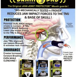The Brain-Pad 3XS mouth guard is a Tri-Thermoplastic Protective & Performance dual arched mouth guard. Brain-Pad's advanced high-impact gel cube inserts offer a whole new level of lower jaw deceleration and impact absorption. The tapered channel ends replace the need for trimming for desired comfort and custom fit. Augmented front wrap-around bumper along channel sides increases later jaw stability and protection. A new larger, ventilated, and snap-tight case with large handle manufactured with antimicrobial materials deprive germs an environment to thrive. Includes strap for multi-sport use. High Impact gel pad inserts Gel form liner molds firmly to teeth, supporting the entire arch Airflow clench and breath technology enhance breathing 30-second custom fitting Latex Free The preferred mouth guard for high level contact sports
