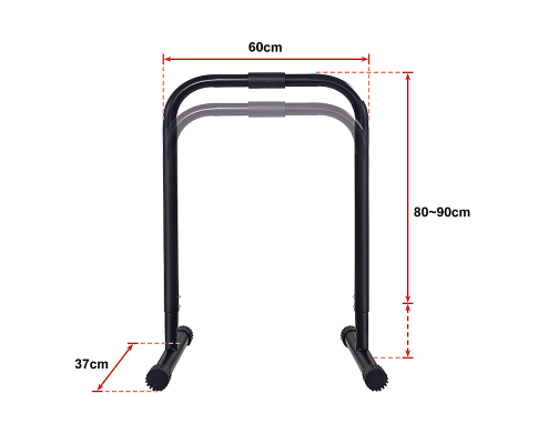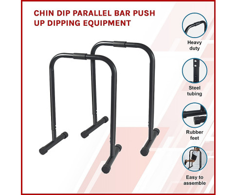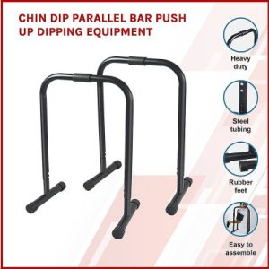 This Chin-Up And Dip Bar is a must for any home gym. This training station allows you to perform a wide range of body building exercises right in the convenience of your own home. This versatile stand is a great enhancement for strength training and for any exercise routine. The fitness rack includes two eight pound dipping bars and has a weight capacity of up to 150kg.