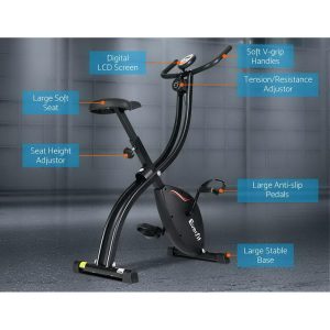 Our Everfit Exercise Bike is a very efficient low-impact cross trainer that offers eight adjustable mechanical resistance to tone every muscle in your body. The easy-to-read LCD display lets you keep track of your training parameters. The durable powder-coated X-shaped steel frame is strong and sturdy and the large seat is comfortable with every stride. Other great features include soft V-grip handles, thumb lock, large and soft padded seat and adjustable seat height. Not least, the exercise bike also features a silent magnetic system that allows you to workout anytime of the day or night without causing any disturbance.