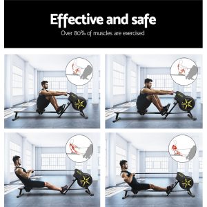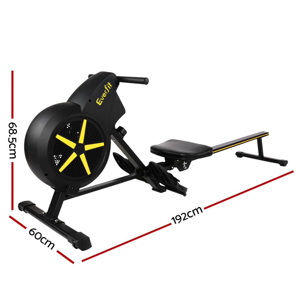 The Everfit Rowing Machine features 8 resistance levels utilising an air resistance system, this machine is ideal for working large muscle groups at your back, legs, arms and abs as well as providing great cardio workouts at the same time. The wheel glide rail system is made of durable steel while the moulded seat and adjustable footrest lets you work out safely and comfortably. You can easily check on your workout rate with the large LCD display to ensure desired results at the right pace.
