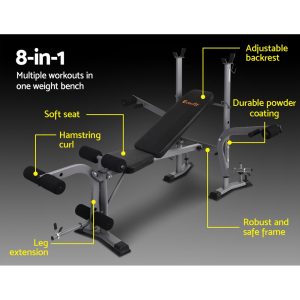 The Everfit Adjustable Weight Bench allows you to do all your exercises without having to switch machines. Throughout your workout, you can do military press, bench press, incline press, chest flys, leg curls and lying leg curls. All in one bench, maximise your workout time with optimised safety feature.