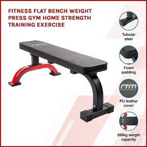 Our flat bench offers a sturdy construction with tubular steel, foam padding, PU leather cover, and rubber materials, in a sleek black and red colour scheme. Boasting a weight capacity of 300kg and dimensions of 116 x 65 x 41cm (L x W x H), it ensures stability and support during workouts. Included accessories are a user manual for easy assembly and usage. Built to last, it boasts oil- and sweat-resistant high-density padding and wide, capped feet for safety and comfort during exercises.
