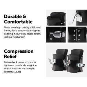 The solid steel construction and secure single-action safety-lock makes our inversion boots safe and reliable. They are durable and sturdy and built to last! The boots are made comfortable by the contoured support pads that protect your ankles and legs. These boots can be used with an inversion table for complete spinal decompression and for a full-range of inversion stretching exercises.