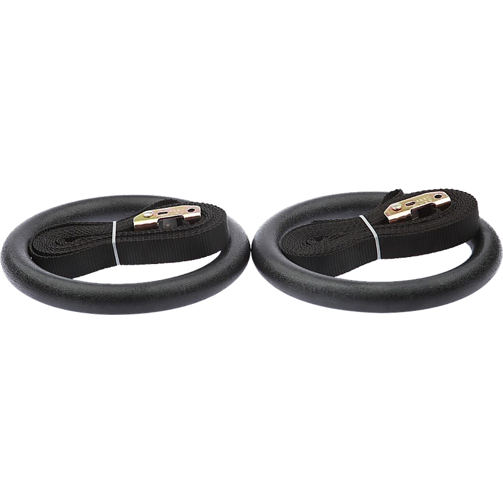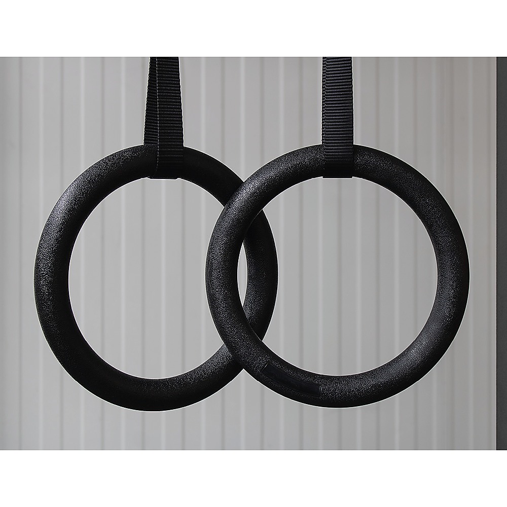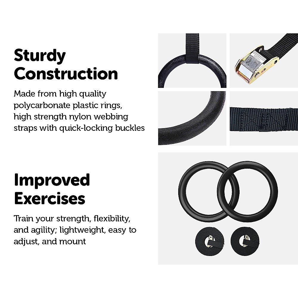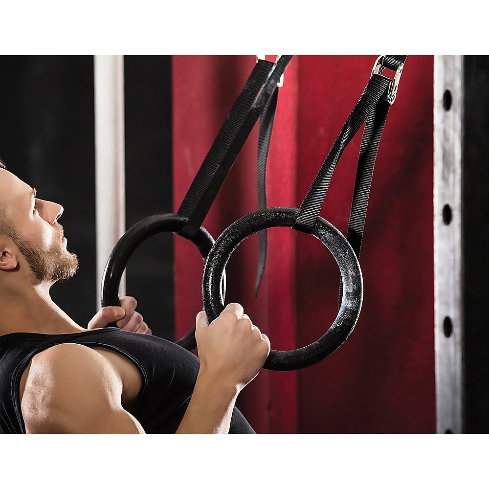 Two gym hoops come with adjustable nylon straps which can be hung around building features, etc. Exercising with gym hoops will result in gains in upper body strength that you won't believe. You'll increase your overall core strength and even improve your posture. It's also a more fluid movement that will reduce wear and strain on your joints.