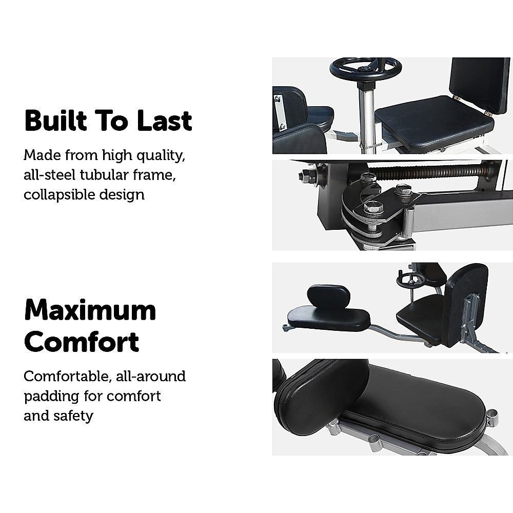 Ready to take that next step for your physical fitness regimen, martial arts, yoga and more? Your answer is the Leg Stretcher Machine. Designed to deliver the ultimate stretch for the extra leg flexibility you’ve been looking for — in as little as 10 minutes a day! — this durable machine gives you a thorough but comfortable workout.