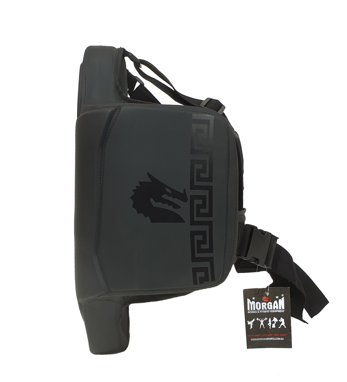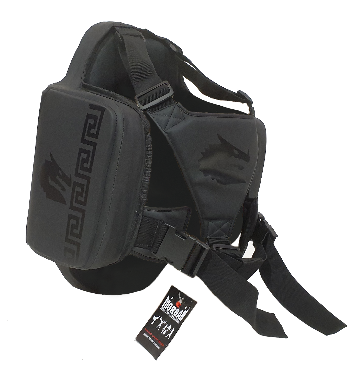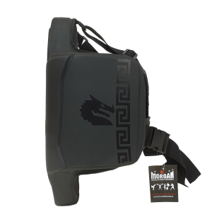 MORGAN B2 COACHES CHEST GUARD The Morgan B2 Bomber chest guard is updated with a modern design and technology that incorporates layers of high-quality EVA, underlay, and quad-core T3 padding. Perfect for coaches or trainers, this chest guard is made from our premium matt finished synthetic leather with full-body coverage to provide ELITE level performance. The lightweight (1.7kg) contoured shape infuses 7.5cm of multiple layers of energy-absorbing foam for heavy protection while allowing you to move freely during training. Five adjustable safety points offer a customisable fit with an additional rear padded back support to allow the chest guard to be worn for longer durations while limiting back and shoulder fatigue. G8 grade synthetic matt leather Exclusive Quad Core 3 commercial grade padding 5 points of adjustment Padded back support to limit fatigue Height = 53cm Width = 87cm (wrap-around body) Thickness = 7.5cm 1.7kg overall weight
