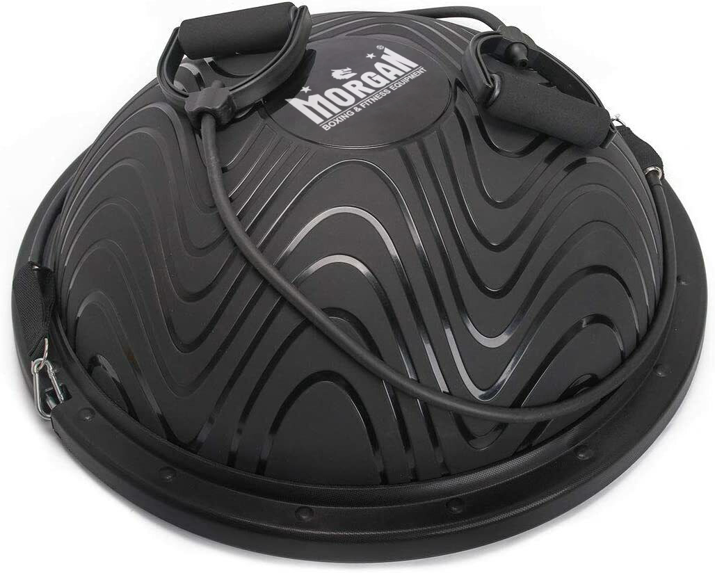 MORGAN BALANCE TRAINER The Morgan Balance Trainer is designed to help you improve your balance and strengthen your core. Made with anti-burst technology, this versatile unit deflates slowly if punctured to provide excellent safety. With a reversible design, allowing you to use both the inflated ball surface and the flat underside, you will receive a whole-body workout. Broaden your fitness regime and get a full-body workout when you use the Morgan Balance Trainer. Features Designed to help improve balance and strength On-board resistance bands allow a full-body workout Anti-burst technology provides increased safety Reversible design for versatile use Perfect addition to your commercial gyms Works the same way as a BOSU ball Max user weight = 120KG