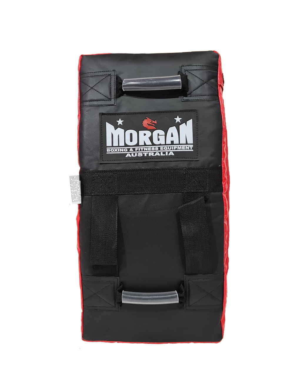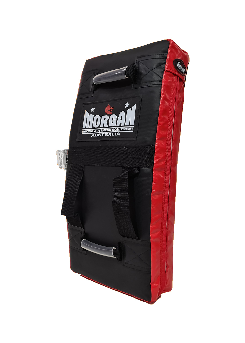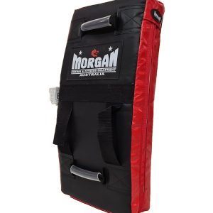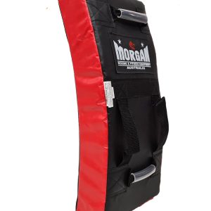 MORGAN JUNIOR CURVED HIT & STRIKE SHIELD The Morgan Junior curved strike & hit shield is one of the most basic pieces of training equipment you can own in a martial arts dojo. The junior shield is made using a 750D smooth ripstop vinyl, specifically designed for kids to kick and punch without leaving abrasions on their skin. Using 10cm of high-density and closed-cell foam, our junior kick shields can be used for punching, kicking, and tackling. The Junior shields offer both resistance and cushioning. The extra strong vinyl on the striking area covers our high-density foam so that the shield is light enough to hold for extended periods while still providing a maximum amount of impact absorption. The air vents on the side reduce strain on the seams so the shield will last a long time. Dual plastic tube nylon handle and strap configuration allow the shield to be held in a variety of positions, making this an extremely useful training aid. Filled with high density Australian made foam – a higher density foam compensates for a thinner shield offering the shield holder a maximum amount of protection Made from 750D rip-stop material Made with dual plastic tube handles Air release eyelets Ideal for Junior martial arts, rugby league or union Dimensions: 66 x 30 x 10cm