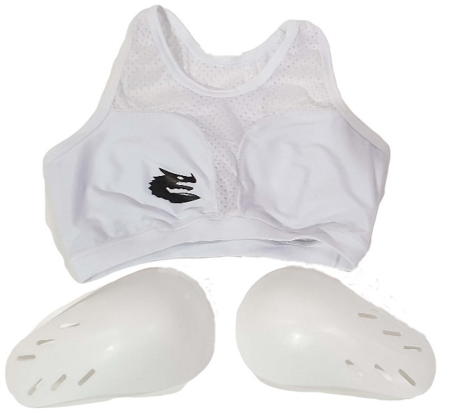 MORGAN COOL GUARD BREAST PROTECTOR The Morgan Sports ladies cool guard, breast guard is a breathable and comfortable, non-wired sports bra supplied with 2 molded breast inserts. The Layered pockets ensure that the plastic inserts do not touch the skin. They are discretely and easily inserted into the sports bra allowing for more comfort. The top can be used as a sports bra or crop top on its own, or plastic inserts can be added for extra protection. Made from a very soft and comfortable nylon spandex mix makes this the perfect all in one breast support and protector. Breathable and comfortable Non Wired support Can be used as a sports bra or crop top Made from nylon spandex mix
