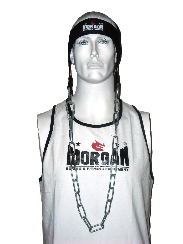 MORGAN HEAD WEIGHT LIFTING & NECK HARNESS The Morgan head weight lifting and neck harness are designed to increase strength and muscle definition in and around the neck area. A strong neck musculature not only supports the spine and improves posture, but is also an essential target zone for bodybuilding. Increase your workouts using our head harness with chain, manufactured using a soft polyester lining for comfort, high-grade steel chains for a safe work out, and the adjustable strap for a secure fit. Cut from the toughest neoprene fabric, the Morgan neck harness will withstand all the burdens of weightlifting and bodybuilder training. Made from N4 performance neoprene Multi-layer padding for multi-directional cushioning and protection Lined with a resilient yet soft polyester shearing for unbeatable comfort 65cm chain and D shackles for unbreakable power Hook & loop fastening for complete adjustability for all head sizes