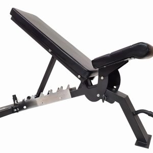 MORGAN COMMERCIAL GRADE INCLINE & DECLINE SUPER BENCH Our Morgan Commercial quality super bench is a great and versatile addition to any gym and can be easily moved around using the wheels and handle features. This heavy-duty adjustable bench has a ladder backed without pop pins for adjustment. Our bench is made from 3mm powder-coated steel and laser cut finishing, the rear pad can be adjusted to multiple heights ranging from -15, 0, 30, 40, 45, 60, 75 and 80 degrees. Our Seat pad also has 3 different positions that are easy to adjust with a quick-release pin function. An Extra-wide rear base for optimal lifting stability and the front base is shorter for less foot interference. Specifications: Unit Dimensions – 1.26 x 0.80 x 1.23 (full incine) 0.48 (flat) Back pad dimensions – 94 x 31 x 60 Buttock pad dimension – 35 x 37 x 6 Wheels for easy movement Load 300-450kg Commercial grade Approx product weight is 36.5kg