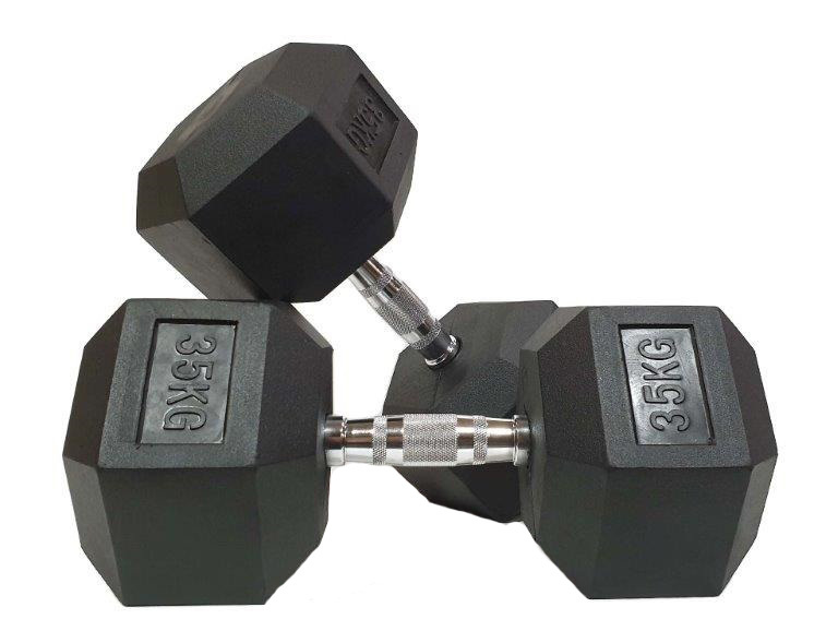 MORGAN RUBBER HEX DUMBBELLS – PAIR [35kg]
