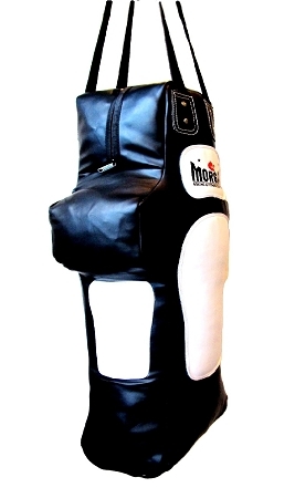 MORGAN TORSO SHAPE 3FT (EMPTY) HEAVY BAG The Morgan Torso-shaped heavy punching bag is designed to withstand the roughest boxing and MMA workouts. Perfect for targeting and practising specific body punching and kicking techniques, its 0.5cm EVA sheets under white target areas are designed to create real-life high-impact strikes on a dummy opponent. It can be used to practice clinching, ground and pound plus throwing, and is ideal for flying knee and direct elbow strikes. Its 4-way tie-down strap is made to eliminate any swinging. Supplied empty and weighing approximately 30-35kg (once filled) at 3ft in height, the Morgan Torso-shaped heavy-duty punch bag is the perfect addition to any combat sports gym. Human torso shape 3ft in height Used for direct sticking simulation Padded inserts under white target zones Hanging and TIe down straps to minimise movement