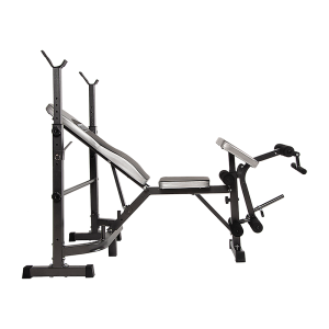 Cross-train for your favourite sport, or just get your body in perfect shape for your next beach outing. It comes with a complete leg development system, a weightlifting bench, squat station, ‘preacher pad’, and a military press station for a total body workout. Its two-piece construction gives you the option to use the upright support bar for your lunges and squats. Use the utility bench half to do your arm, core, and lower-leg exercises. With angled uprights, you can return your weight bar to the catches safely and easily.