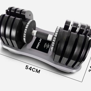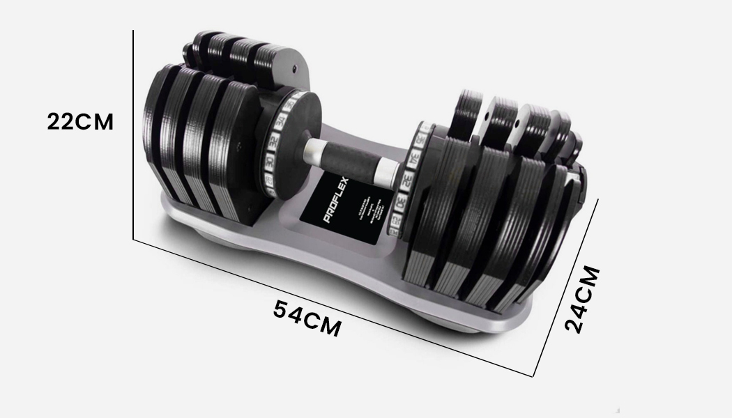Upgrade your home workout with the Proflex 18-in-1 25kg Adjustable Dumbbell. Increase strength, bone density and muscle mass at your own pace, in the comfort of your own home. Whether you are new to exercise and looking to invest in your first piece of gym equipment, or a seasoned athlete wanting to add another weapon to your arsenal, this sleek and adaptable dumbbell is perfect to help you achieve your fitness goals.