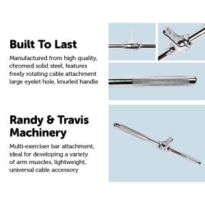 While maximizing the effectiveness of your training, an intense isolated workout focused on a variety of muscle groups is one of the benefits of the Revolving Straight Bar. Enjoy the best and most effective cable exercises you have ever experienced with the addition of this product to your workout regimen. The cable attachment is versatile and can be used at the gym or at home. Take your fitness training to the next level with the Revolving Straight Bar. It will expand your workout training to include a wider range of exercises that will help build the rock solid body you want!