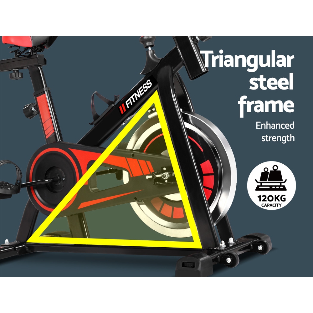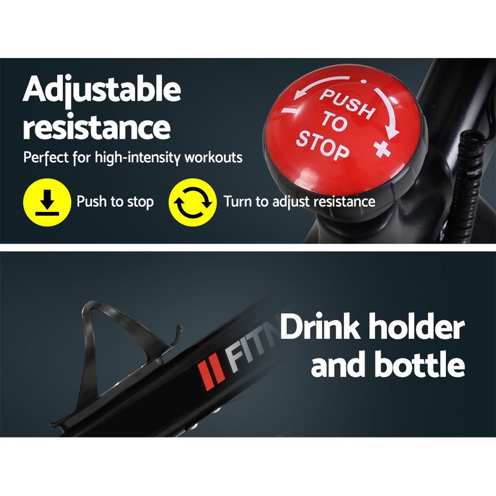 Our Spin Bike helps to supplement your road biking sessions and get fit in the comfort of your home anytime. With a heavy-duty stainless steel 6kg flywheel and automotive-grade drive belt that delivers plenty of resistance via a control knob, the spin bike offers a smooth and noiseless workout. The frame itself is made of industrial-strength powder-coated steel for durable and robust use. Plus, an onboard computer with an LCD monitor assists in tracing six fitness parameters in one easy operation. The spin bike features an extra-thick padded saddle seat that is fully adjustable in height and position. The handlebar is also adjustable to suit your handling comfort. Not least, the spin bike comes with non-slip pedals with straps and built-in transportation wheels for easy mobility.