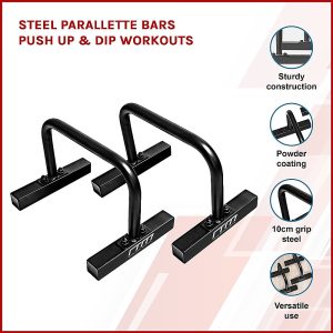 With top-quality construction, heavy-duty steel is powder coated for durability under even heavy commercial gym use. These versatile parallelettes can also be a useful tool for rehabilitation from injury, making it a useful piece of equipment for physical therapists as well. Their easy-to-use 10cm-circumference makes it easy to grip no matter what size hands you have.